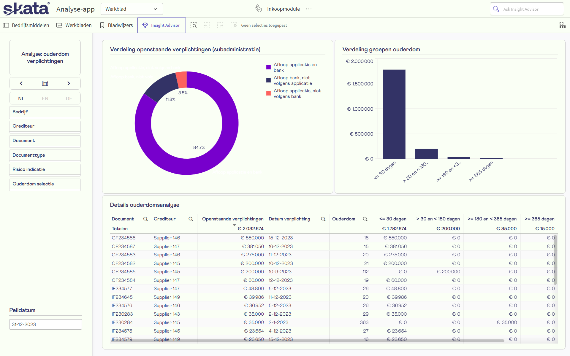 - Sluitende aansluiting tussen inkoopfacturen, crediteuren en grootboek.